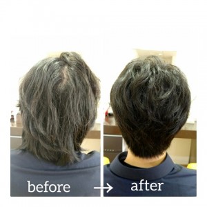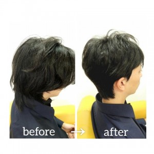 そんな伸びきったヘアスタイルを、カットにちょいとパーマをプラスして、劇的にカッコ良くしたのがこちら^^